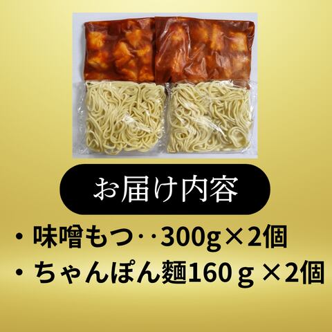 ※味噌だれ入もつ300g✕2袋、ちゃんぽん麺✕2玉のセットです。野菜はご用意ください。