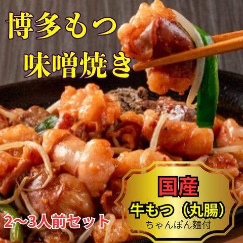 博多もつ味噌焼きセット(国産牛丸腸のみ使用) 2~3人前(ちゃんぽん麵つき)